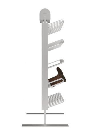 The boot and shoe dryer AIR is available for wall-mounted, freestanding and mobile configurations. Its made from stainless steel (304) or seawater resistant steel (316). The systems are available for 5, 10, 15, 20 or 30 pairs (single or double sided) and are suitable for shoes as well as gloves. The system is connected to the warm-air blower FLOW300 and can be easily turned on and off with the 10h digital timer.