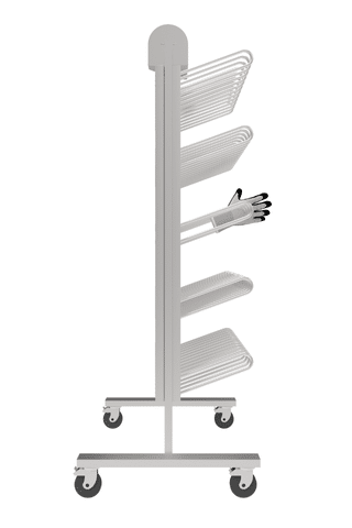 The glove dryer AIR is available for wall-mounted, freestanding and mobile configurations. Its made from stainless steel (304) or seawater resistant steel (316). The systems are available for 7, 10, 20, or 30 pairs.