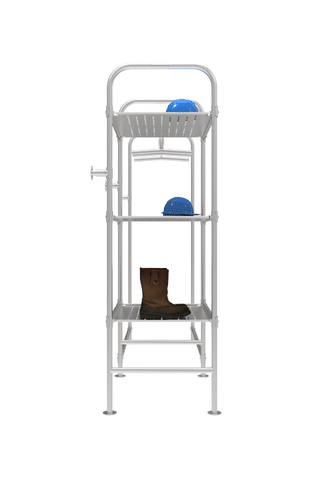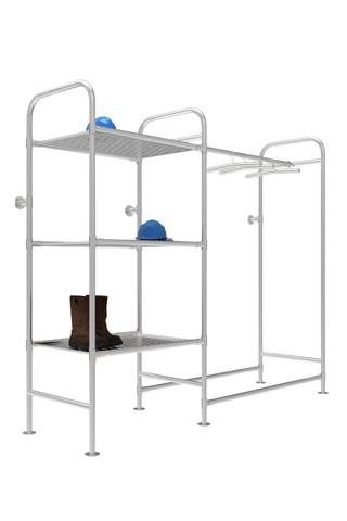 In addition to drying solutions, we offer stainless steel storage racks. These racks enable organized gathering and hanging of work clothes, enhancing changing room efficiency. Choose from wall-mounted, ceiling-mounted, or freestanding/mobile options to transform your mud room into a tidy space.